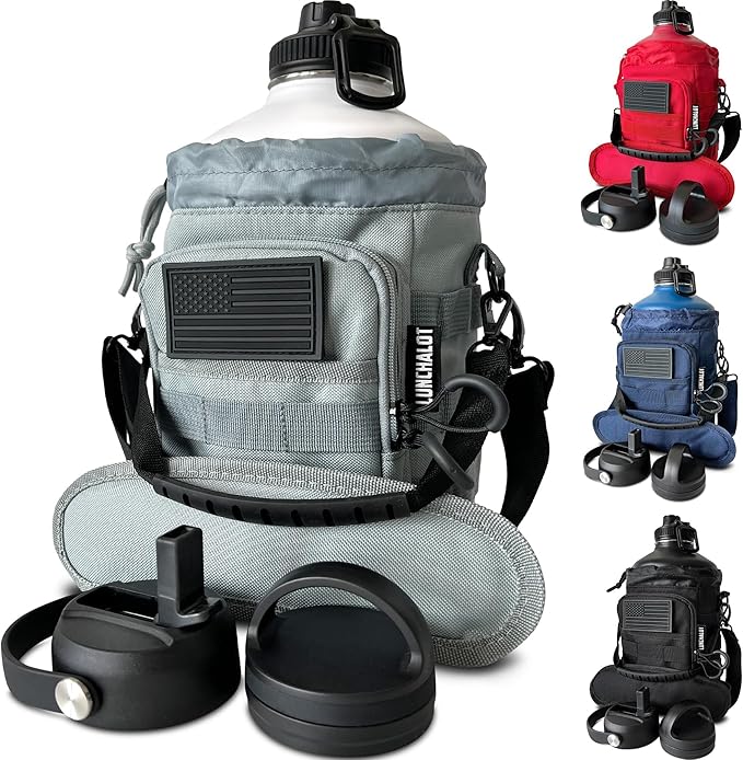 1 Gallon Water Bottle Insulated - 128 Oz Stainless Steel Metal Water Jug with Holder - | Carrying Bag | Spout Handle | Straw Lids | Keep Cold & Hot | - White Tactical Flask