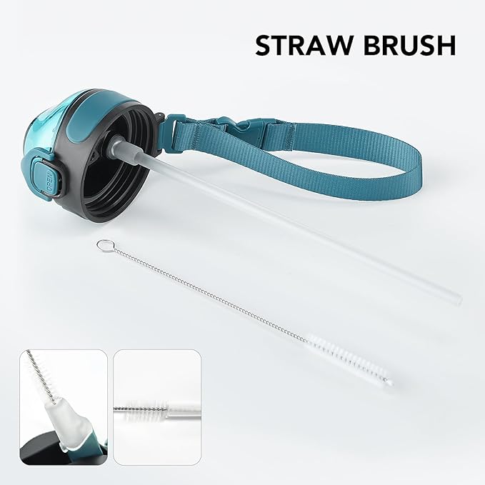 - Humanized Design: The one-hand operation button allows for easy access to water. Highly suitable for boys and girls, and all ages. The flip-top lid of the insulated thermos is used a secure lock, making it dust-free and leak-proof. The included straw brush makes maintaining your bottle's cleanliness uncomplicated and efficient.