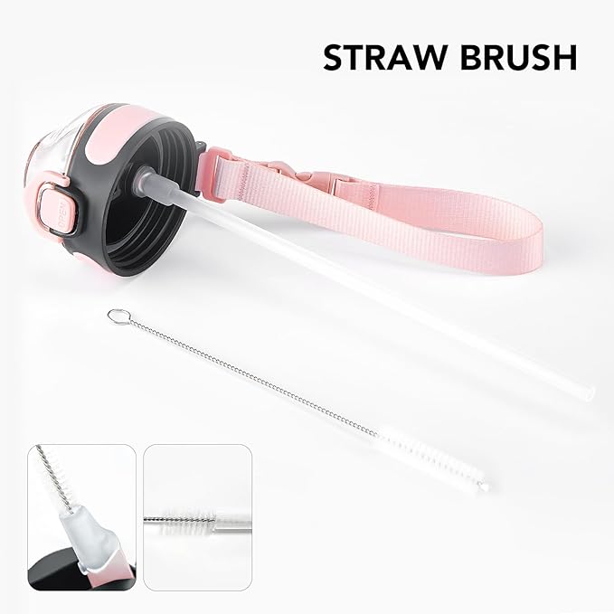 - Humanized Design: The one-hand operation button allows for easy access to water. Highly suitable for boys and girls, and all ages. The flip-top lid of the insulated thermos is used a secure lock, making it dust-free and leak-proof. The included straw brush makes maintaining your bottle's cleanliness uncomplicated and efficient.