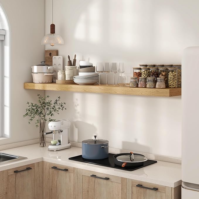 Deep Floating Shelves for Wall - 72 Inch Wide x 12 Inch Deep Wall Shelves Set of 1 - Rustic Oak Color Wood Shelves for Living Room, Bathroom, Laundry Room, Bedroom, Kitchen, Home Office