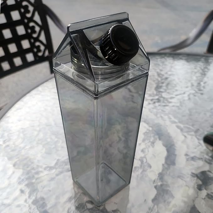 - 【TRENDY & CUTE】: This clear milk carton water bottle features a minimalist look. It allows you to put any stickers you like to make it into a customized bottle. Choose this water bottle and make drinking water a pleasure.