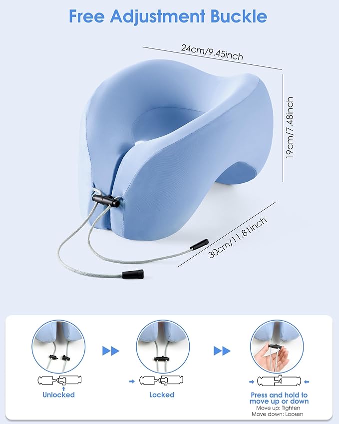 - 【Free Adjustment Buckle】The travel pillows for sleeping airplane has an adjustable rope lock. You can adjust the angle and the size of the airplane pillow at will to meet different neck size requirements. More importantly, it can be easily hung on luggage, which is a very practical function when you travel.