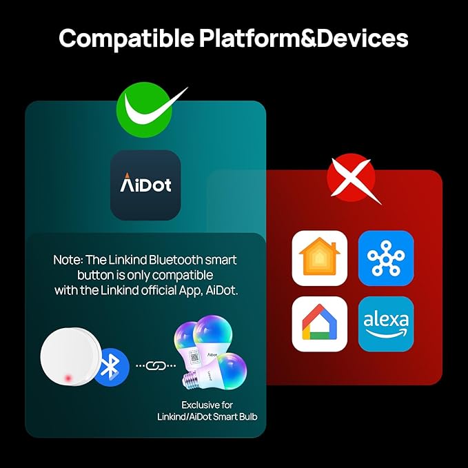 - 【Note】Linkind smart bulbs are generally not compatible with traditional dimmer switches. ONLY support 2.4GHz.You could search for the using problem in "Feedback" of the AiDot APP.