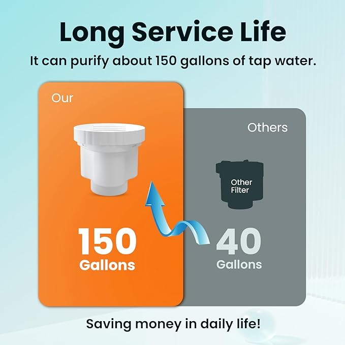 - Premium Filter Materials - Crafted with carefully selected Sri Lankan natural coconut shell activated carbon, our filters are BPA-free and lead-free, ensuring a good experience. Through a meticulous forging process and rigorous inspection protocols, each filter is guaranteed to enhance the natural taste and quality of your water, safeguarding the hapiness of you and your loved ones!