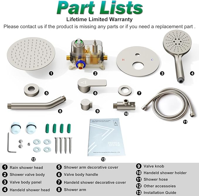 - 【CONTAINS cUPC CERTIFICATIOIN】This shower cartridge is cUPC certified, the shower system meets local US safety certification installation standards and can be installed with confidence. The shower valve kit has two built-in check valves to reduce water noise.