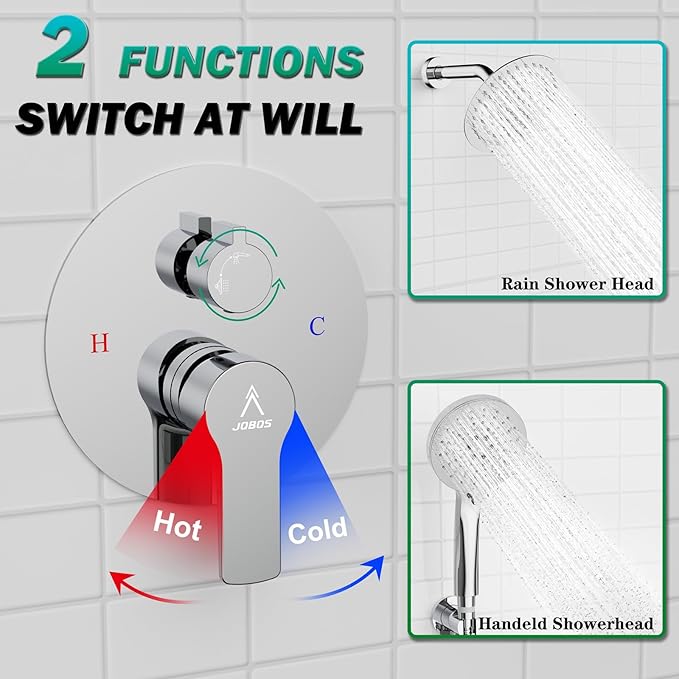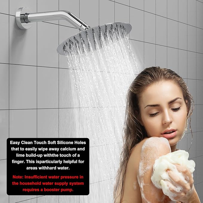 - 【HIGH QUALITY MATERIALS】This shower head and handle set has a solid all-metal construction. The mixing valve is made of solid brass and the multi-layer plating passes the salt spray test to reduce corrosion of the shower's surface in long-term humid place, featuring no rust and long life, the fixed place of the shower top spray can be rotated 360 degrees, while the 304 stainless steel rain shower head with silicone nozzles wipes away mineral deposits with a simple wipe.