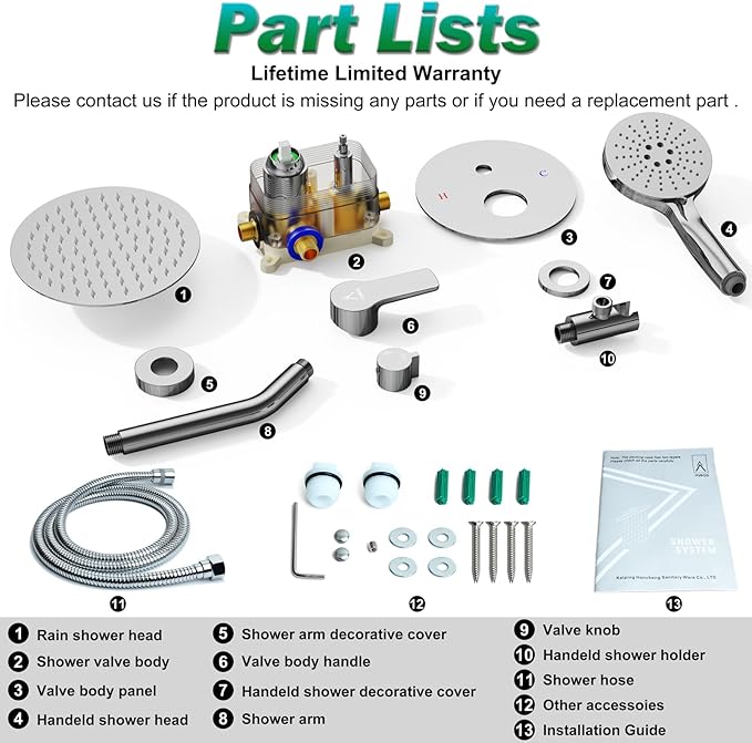 - 【CONTAINS cUPC CERTIFICATIOIN】This shower cartridge is cUPC certified, the shower system meets local US safety certification installation standards and can be installed with confidence. The shower valve kit has two built-in check valves to reduce water noise.