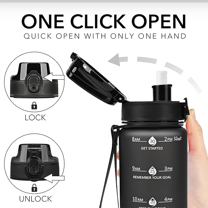 - Motivational Quote and Time Marker: 32 oz water bottle with inspirational quote and time marker on it, reminding you to stay hydrated. And helps you reach daily health and fitness goals.