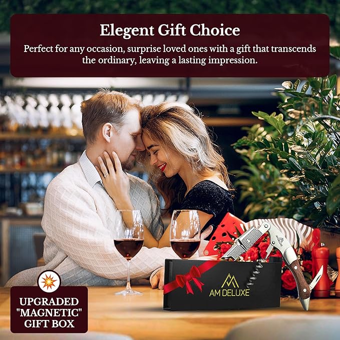 - ELEGANT GIFT CHOICE - Elevate celebrations with gifting our Premium AM DELUXE Waiter's Corkscrew. Timeless craftsmanship meets practical elegance for a refined uncorking experience. Perfect for any occasion, surprise loved ones with a gift that transcends the ordinary, leaving a lasting impression.
