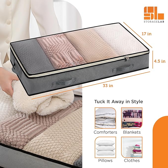 - Clear the Clutter. Keep clothes, shoes, or blankets neatly tucked away when not in use while maximizing home storage space. Tidy up your home with the under bed storage containers from StorageLab.
