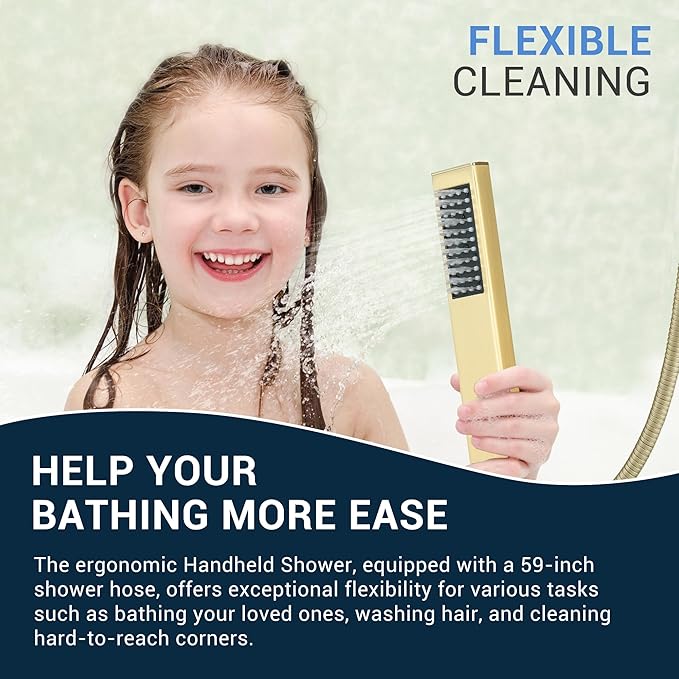 - 【Flexible Handheld Shower】Equipped with a 59-inch stretchable stainless steel hose, making it easy to clean hard-to-reach areas in showerhead. It’s also suitable for bathing children and pets or cleaning the bathroom after a shower. The unique rounded edges are ergonomically designed to provide a comfortable grip.