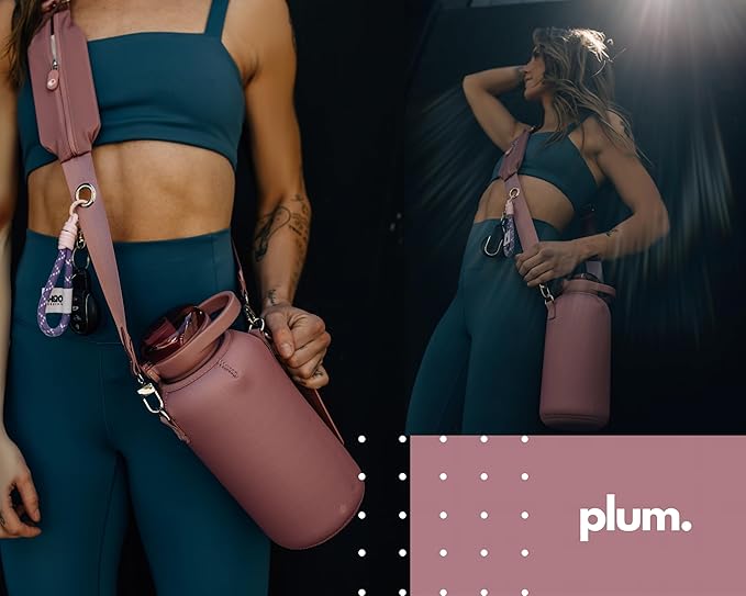 H2O Capsule Half Gallon Insulated Water Bottle With Straw - Stainless Steel Thermos Water Bottle With Sipping/Chugging Lid & Shoulder Strap For Storage - 64 oz Vacuum Flask, Keeps Hot Cold (Plum)