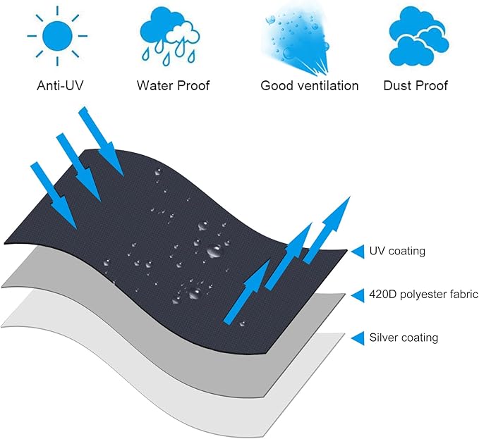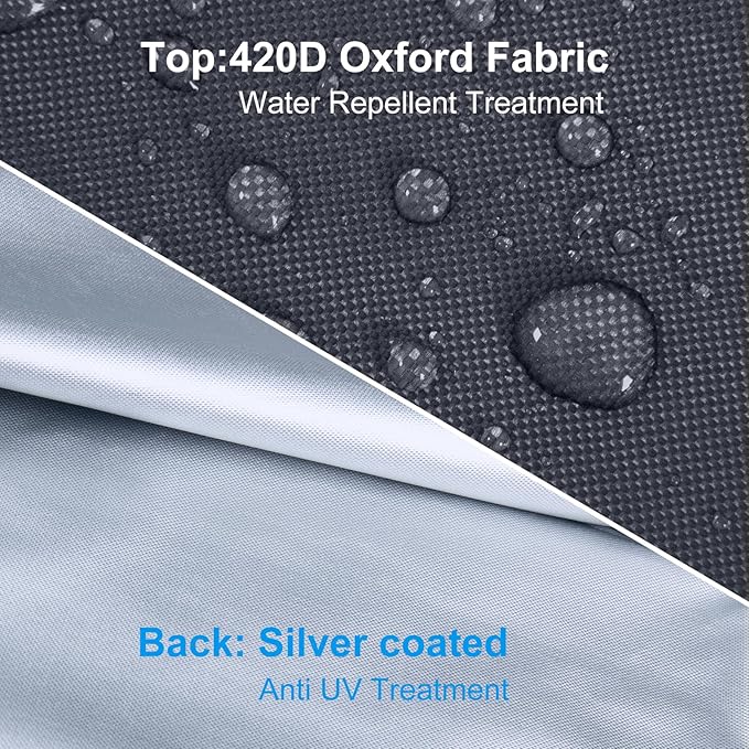 - 【Durable Material】This outdoor umbrella cover is made of 420D Oxford fabric which makes its surface is not only thicker and reliable, but also resistant to water splashing. It will protect your umbrella from any damage by rain, snow, hail, and harmful UV rays as a result of its excellent waterproof, weather-resistant and dust-proof performance. UV resistant design offers enough durability against the sunlight.