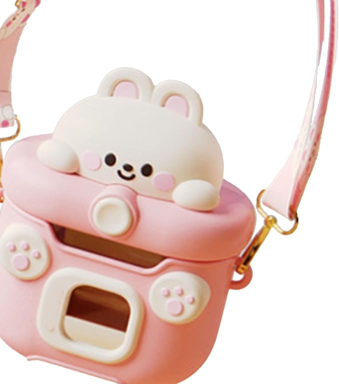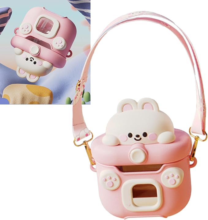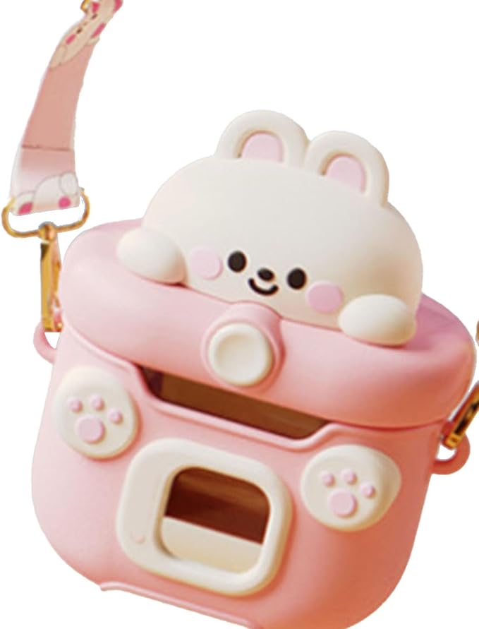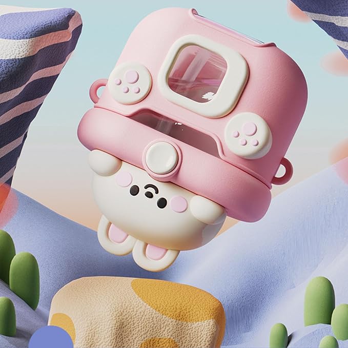Camera Cup for Kids and Adults with Straw, 550ml Portable Cartoon Water Bottle for Office and Outdoor ()