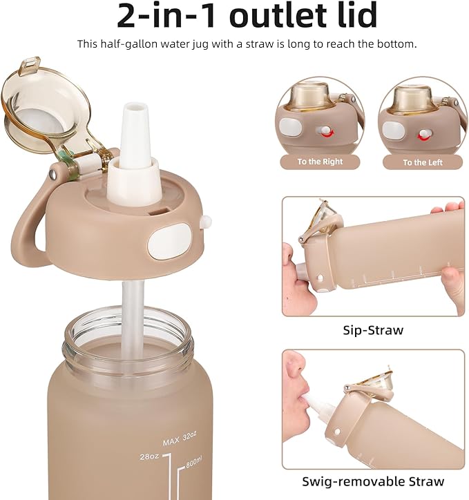 - Leakproof & Functional Design - Simply open with one hand by clicking the button, The flip-top lid is designed with a secure lock, making it dust-proof and leak-proof. The water bottle with a straw makes you drink more easily. The wide mouth is easy to fit ice cubes, and also easy to clean. (bonus cleaning brush)