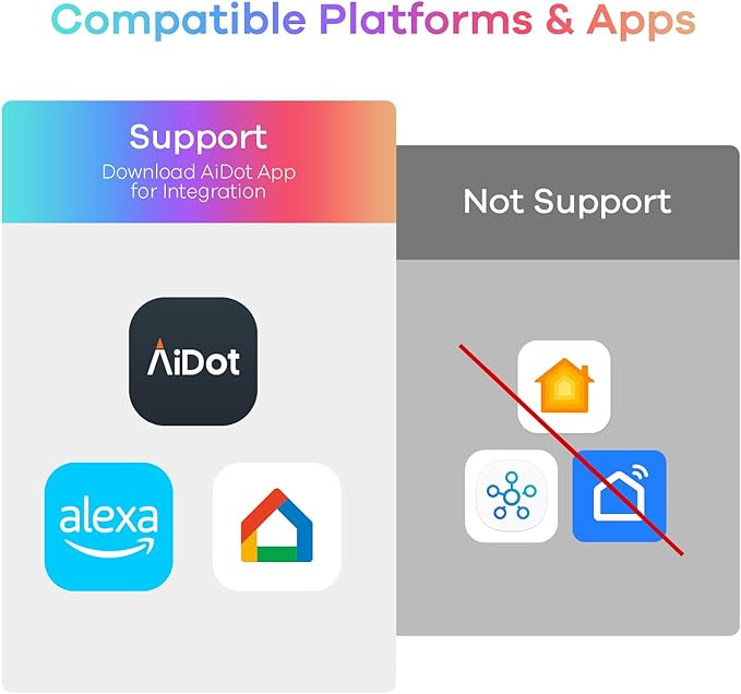 - 【Wi-Fi & Bluetooth Dual Connection】Wifi Bluetooth light bulbs experience faster and more reliable connectivity (2.4GHz Wi-Fi ONLY, NOT SUPPORT 5GHz) Control your lights locally via the AiDot App without a Wi-Fi connection. (INITIAL SETUP REQUIRES BOTH WI-FI AND BLUETOOTH)