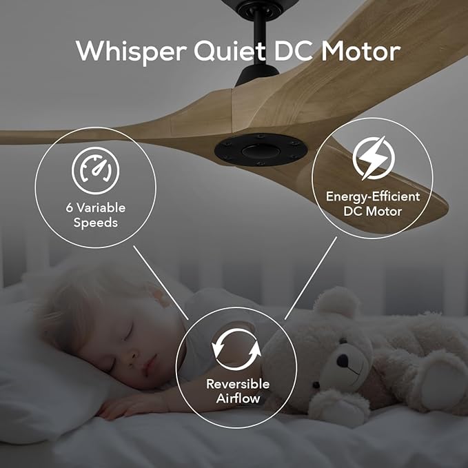 - ✅Energy-Efficient DC Motor: Includes a green, energy-efficient DC motor, the fan provides optimal airflow with high CFM and low noise levels. Enjoy the benefits of a large ceiling fan without disrupting your peace and quiet.