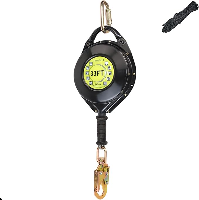 - 【POWERFUL ALLOY STEEL HOUSING】:Unlike most products on the market with fragile plastic casing, our SRL features a robust and durable alloy steel casing, which makes the product drop-resistant, corrosion-resistant and high-temperature-resistant. It ensures long-lasting performance in challenging work environments. Its solid construction strengthens the lifeline's durability, providing dependable fall protection for users. Load capacity is around 130-310LBS.