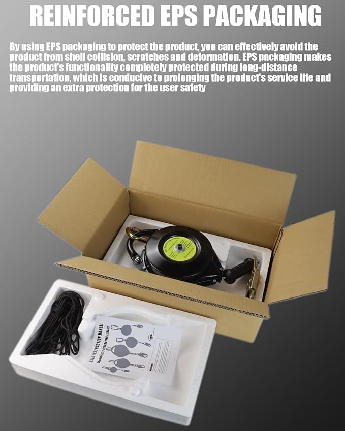 - 【POWERFUL ALLOY STEEL HOUSING】:Unlike most products on the market with fragile plastic casing, our SRL features a robust and durable alloy steel casing, which makes the product drop-resistant, corrosion-resistant and high-temperature-resistant. It ensures long-lasting performance in challenging work environments. Its solid construction strengthens the lifeline's durability, providing dependable fall protection for users. Load capacity is around 130-310LBS.