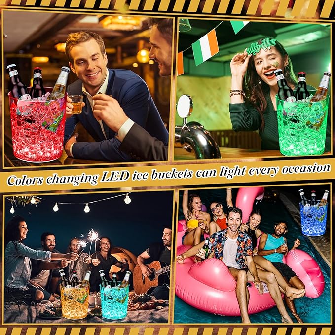 - Color Changing LED Ice Cubes: developed with LED radiance, allowing ice buckets for parties to alternately display 7 different colors; This feature, along with its smooth lines under lighting effects, creates an engaging and lively party atmosphere; Please note our bucket needs to glow in water, and a small amount of water can be added while adding ice cubes
