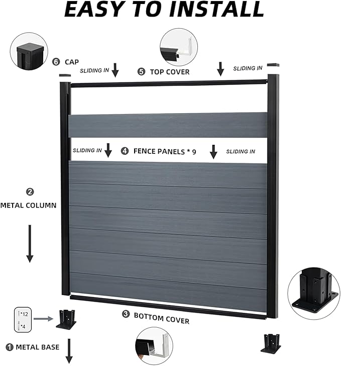 - Easy Installation: No painting or glue required—low maintenance and hassle-free. With the included guide, assembly takes just 20-30 minutes per fence section. The kit includes essential hardware and supports straight-line or 90-degree corner configurations.