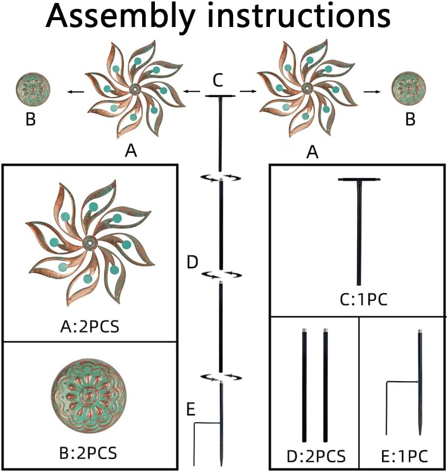 - EASY TO INSTALL:The spirally designed components of yard windmills spinners metal is very easy to install, just need to tighten all components, then insert it into the ground or lawn