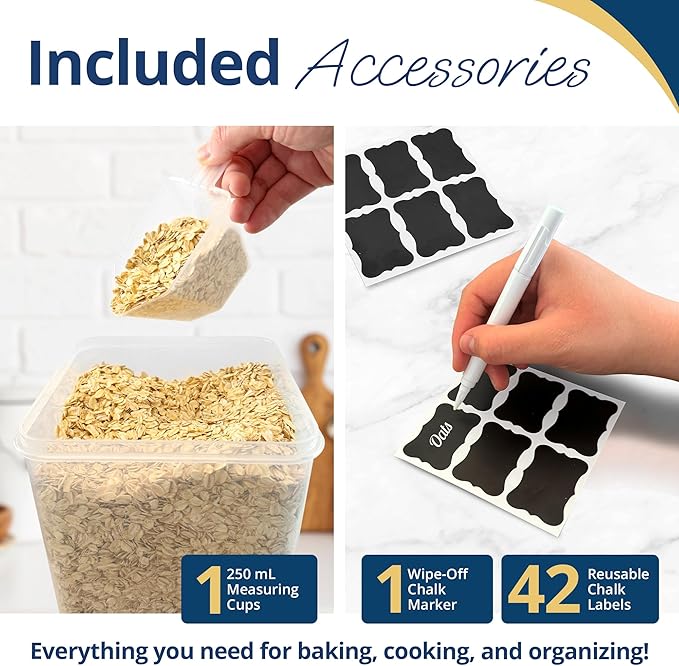 - Stackable & Reusable: Save pantry space with stackable containers! Use the included labels and chalk marker to keep food organized. Wipe with a damp cloth to easily switch contents.