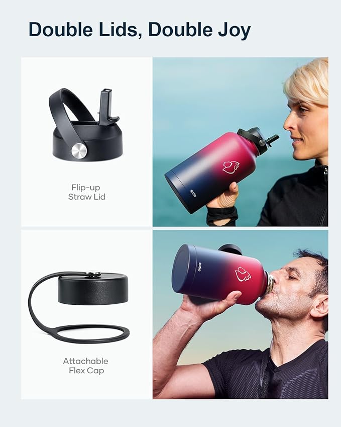 - 2 Lids to Max Its Usability: This stainless steel bottle comes with a straw lid and a flex cap to gear up your games and explorations. Both caps can seal airtight with 100% leak-proof, so you can drink without a spill on the road. *NOTE: ONLY the 22oz and 32oz T-shape bottles fit in any cup-holders*