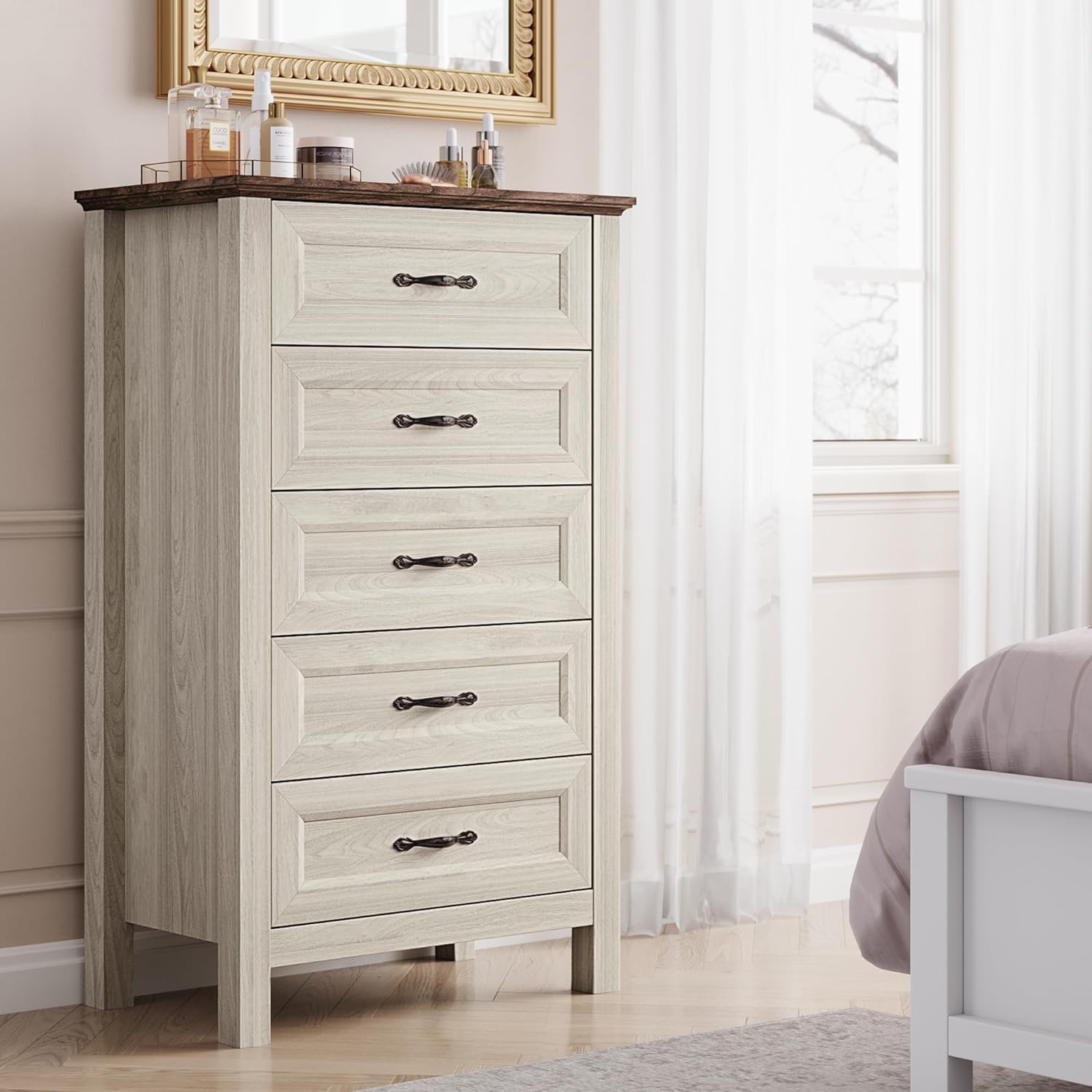 - [AMPLE STORAGE SPACE] - With 5 spacious drawers, this dresser can organize anything . Feel free to place it in your bedroom, living room, entrance or anywhere you like.