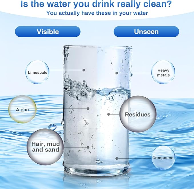 - ENHANCED FILTRATION WITH NATURAL MATERIALS:PB-2 Black Water Filter adopts medical-grade hollow fiber UF membrane and natural coconut shell activated carbon, which can effectively block pollutants larger than 0.01 μm, remove 99.999% of residual chlorine, heavy metals, rust, odor, large particles and other harmful substances, and is produced with lead-free, BPA-free materials to ensure filtration performance and water safety