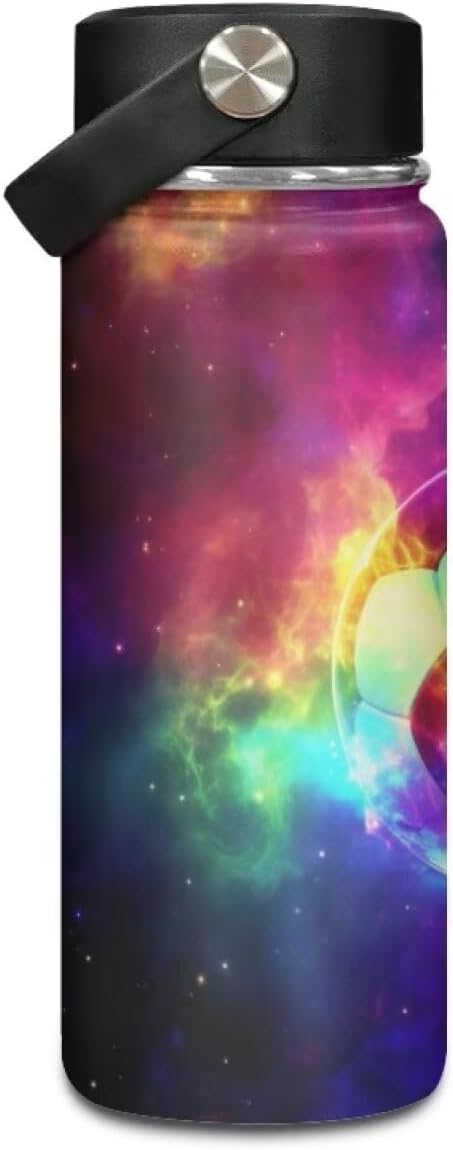 Galaxy Soccer Insulated Water Bottle Stainless Steel Leak Proof Vacuum Easy to Clean Lightweight Keeps Cold and Hot Great for Travel Hiking Biking Running,18 Oz
