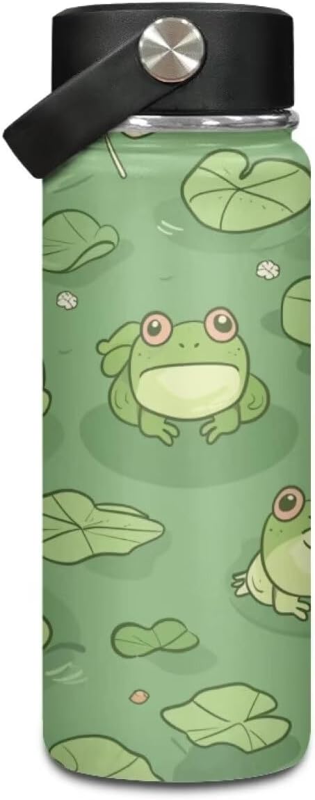 Frog Stainless Steel Water Bottles 20 Oz Insulated Water Bottles Leakproof Reusable Sports Water Bottle for Beach, Travel Cup Coffee Mug Birthday Gifts for Women
