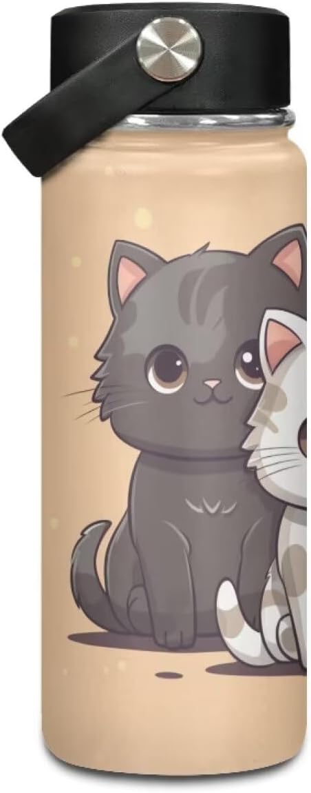 Cat Insulated Water Bottle with Handle Stainless Steel Water Bottle 20 Oz Travel Cup Reusable for Travel Camping Hiking Bike Sports Gym & Office