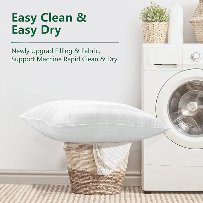 - Effortless Maintenance for Lasting Freshness - Our pillow range combines luxury with convenience, offering machine washable pillows that retain their plush firmness wash after wash. Whether you prefer soft or firm pillows, our queen size pillow set ensures lasting durability and freshness with minimal effort.