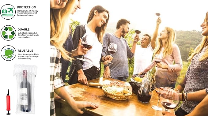 - 【Travel-Friendly Wine Accessories: Reusable】 Kept over worth of wine safe!The wine bottle protector for travel is reusable after being inflated, but it can't deflate and then reinflate. If there are any questions or issues, please don’t hesitate to contact us.