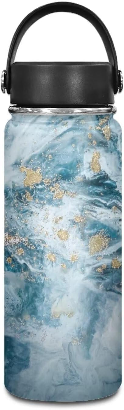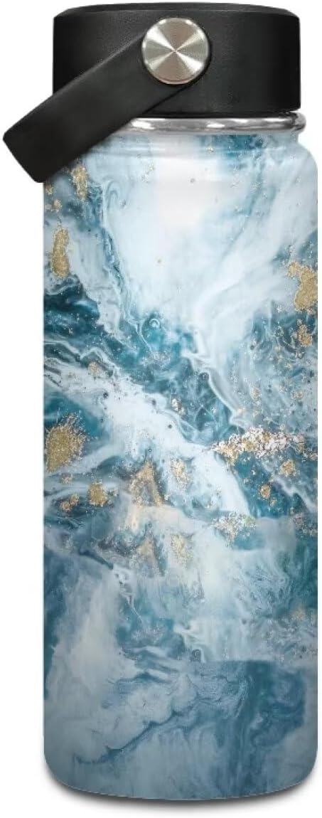 Marble Print Insulated Water Bottle 20 Oz, Vacuum Stainless Steel Sports Water Jug Flask with Handle, Leak Proof Wide Mouth Reusable Mug for Daily Use