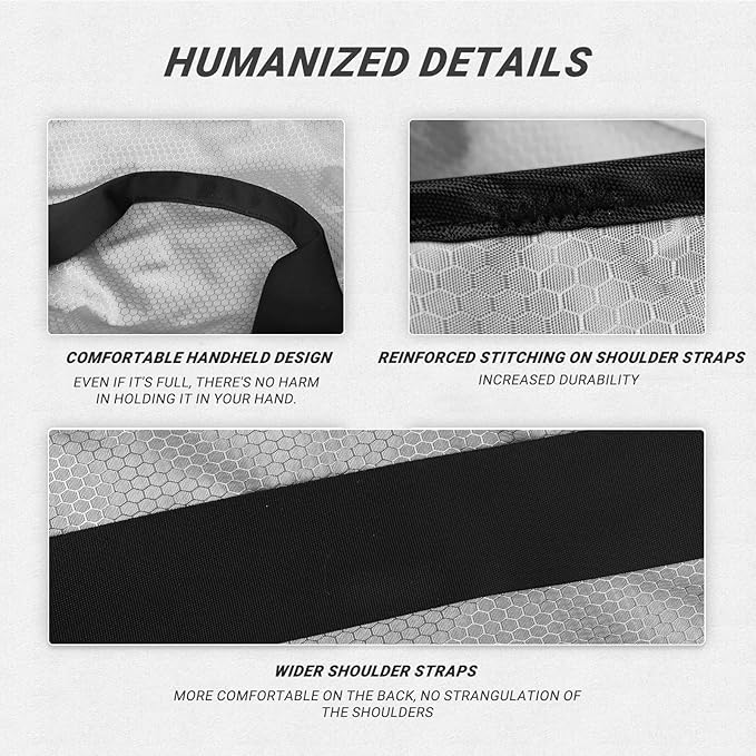 - Adjustable Straps: Laundry bag is designed with adjustable shoulder straps, allowing you to carry laundry bag. The top is designed with a reinforced hanging loop, which can be used as a laundry basket and hang on the door for easy collection of dirty clothes