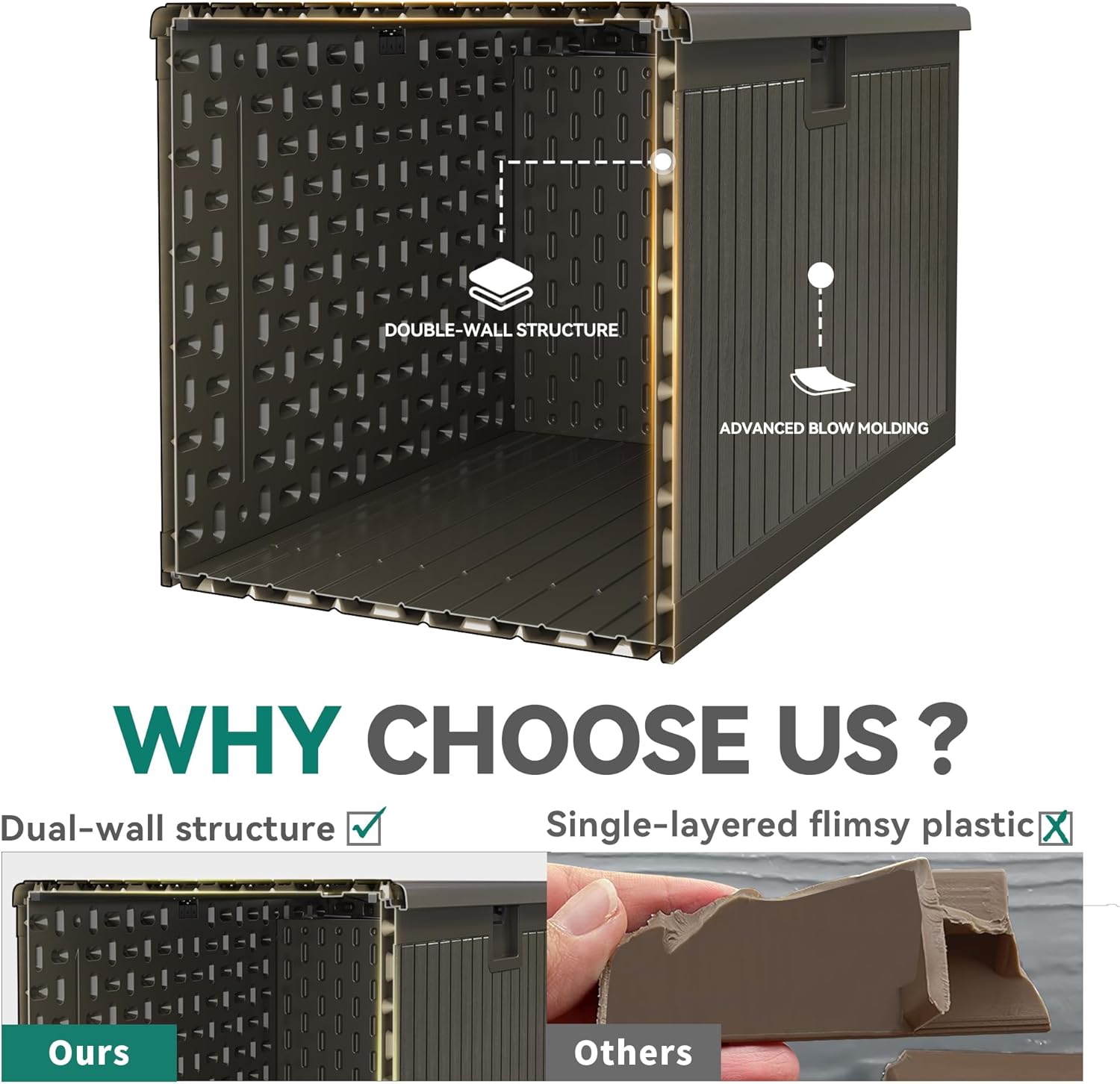 - MULTIPURPOSE GARDEN STORAGE:Doubles as an extra table or bench to accommodate six adults of up to 1000lbs., this deck box blends into any yard or patio while storing patio cushions, gardening tools, pool supplies, etc