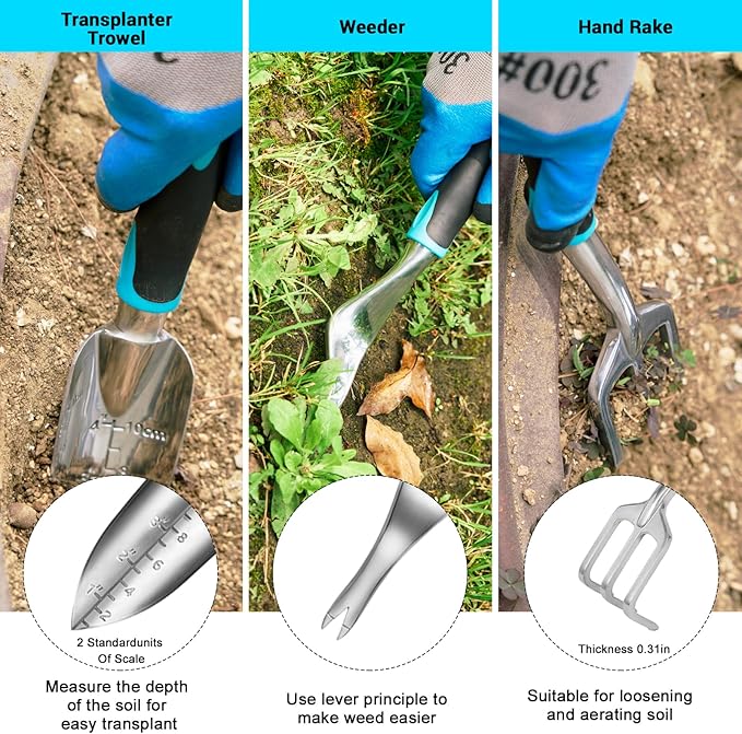 - IDEAL GARDENING GIFTS - Our complete garden tool set, packaged in a beautiful gift box. Excellent gift for garden enthusiasts on various occasions, including birthdays, anniversaries, Valentine's Day, and Christmas. Suitable for friends, spouses, parents, and grandparents with a passion for gardening, the set is thoughtfully designed to meet the needs of gardeners and provide a convenient and efficient gardening experience