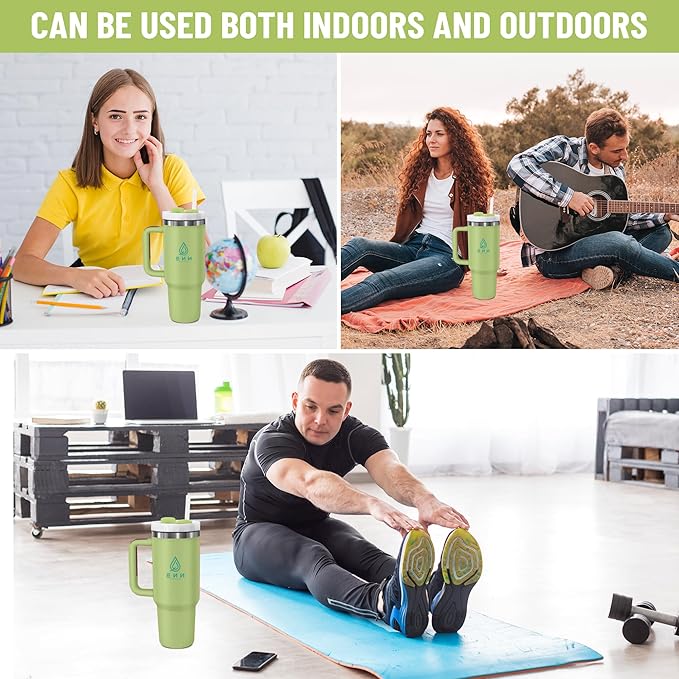 40oz stainless Steel Insulated Tumbler with Handle, lid and straw for cold water, Iced tea, or coffee - 100% Leak-Proof - Cupholder Friendly Travel Mug- Gifts for Women Men Him Her (Green)