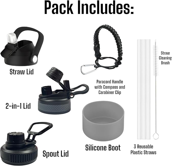 - ADVENTURE-READY ACCESSORIES: With a silicone protective boot, a paracord bottle holder featuring a compass and carabiner clip, an extra plastic straw, and a convenient straw cleaning brush, our set is designed for those always on the move.