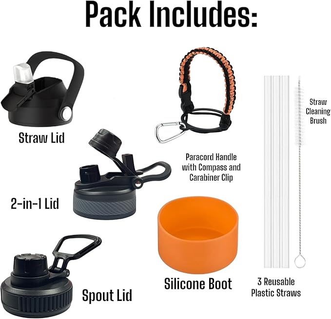 - ADVENTURE-READY ACCESSORIES: With a silicone protective boot, a paracord bottle holder featuring a compass and carabiner clip, an extra plastic straw, and a convenient straw cleaning brush, our set is designed for those always on the move.
