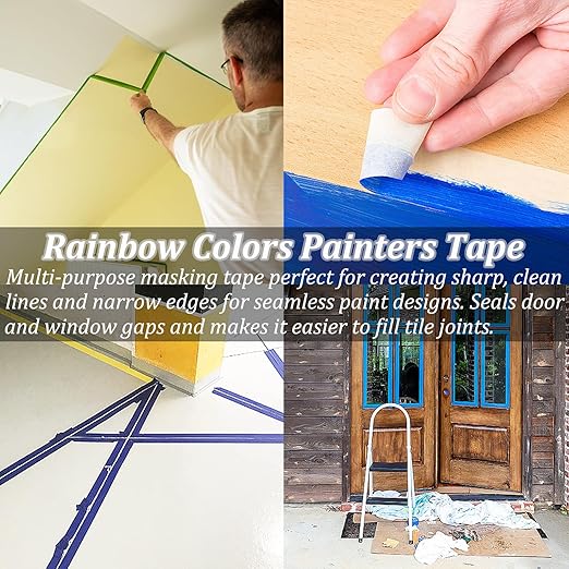 - DIY Art & Craft Tape - Professional color masking tape with high-quality adhesive has good fast adhesion. So this artist paper tape is a good art & craft supplies for kids craft supplies. This rainbow colors tapes can remain on the internal and external surfaces for up to 14 days without worrying about leaving traces. The labeling tape is suitable for mask master to DIY arts, crafts, or drywall painting, labeling, decors. Be careful that blue pinstriping tape is not applied to heavy objects!