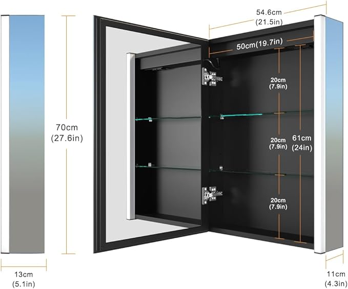 - [Strong Package & Easy to Install] Our mirror cabinet is wrapped with a strengthened package to better protect the LED mirror and cabinet body. It’s easy to install with the instructions. If there are any further questions, please feel free to contact us on Amazon.