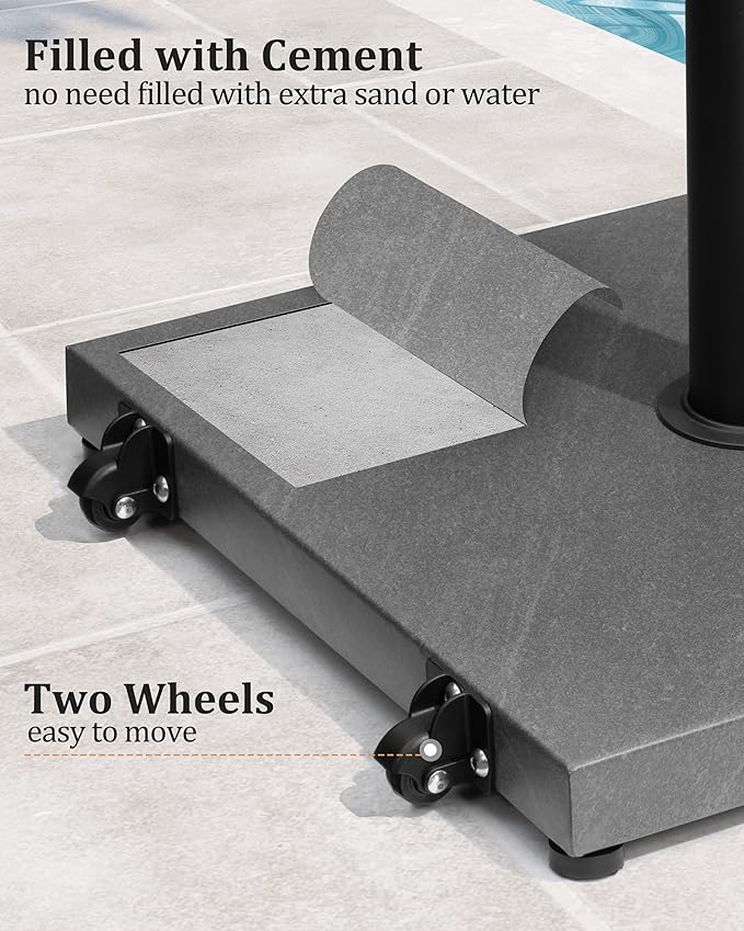 - Filled with Concrete: We have filled the patio umbrella base with concrete, and you don't need to fill it with sand or water in the umbrella base.