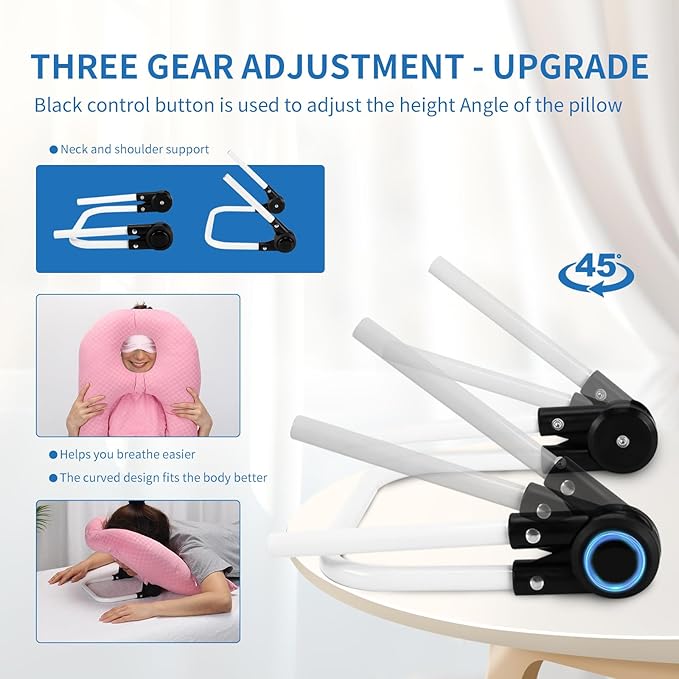 - New Upgraded Face Down Pillow - Our after-surgery pillow has been modified and improved many times, with a reinforced bracket and three-level adjustment to provide the most comfortable face-down pillow. The face pillow includes cotton filling and has an invisible zipper to adjust the cotton according to your needs, keeping it soft and comfortable when you use it.