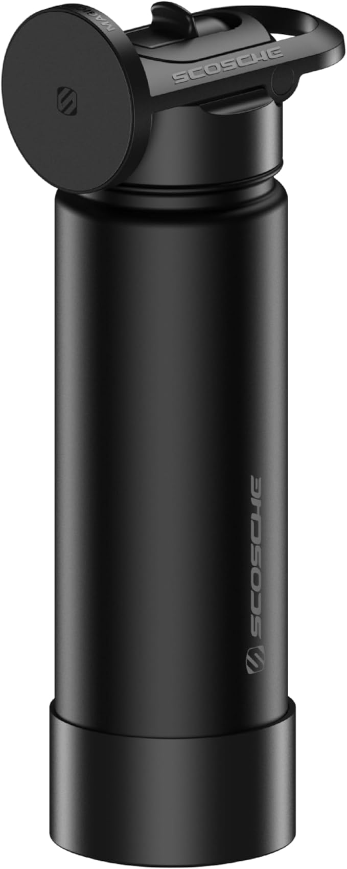 Scosche MFMS22 MagicMount Flask 22oz Stainless Steel Hot & Cold Insulated Sport Water Bottle w/Magnetic Mount Tripod Phone Stand Compatible w/MagSafe iPhone for Cup Holder/Gym/Men/Women/Travel/Black