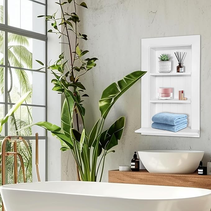 - 【Premium Craftsmanship】Crafted from premium solid wood, our recessed cabinet exudes durability and timeless elegance. The white finish not only enhances its visual appeal but also provides added protection against wear and tear, making it a lasting investment for your home.