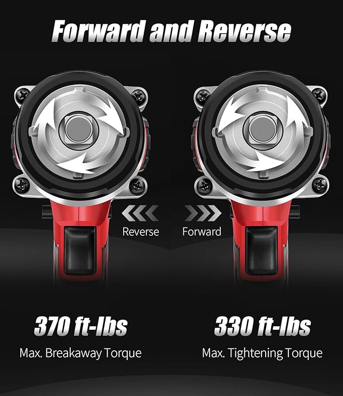 - POWERFUL MOTOR: By removing rusted-on or excessively tightened nuts and bolts, this 1/2 impact wrench, which has a high-end, strong motor, offers maximum productivity; Maximum torque for tightening is 330 ft-lb, and loosening is 370 ft-lb