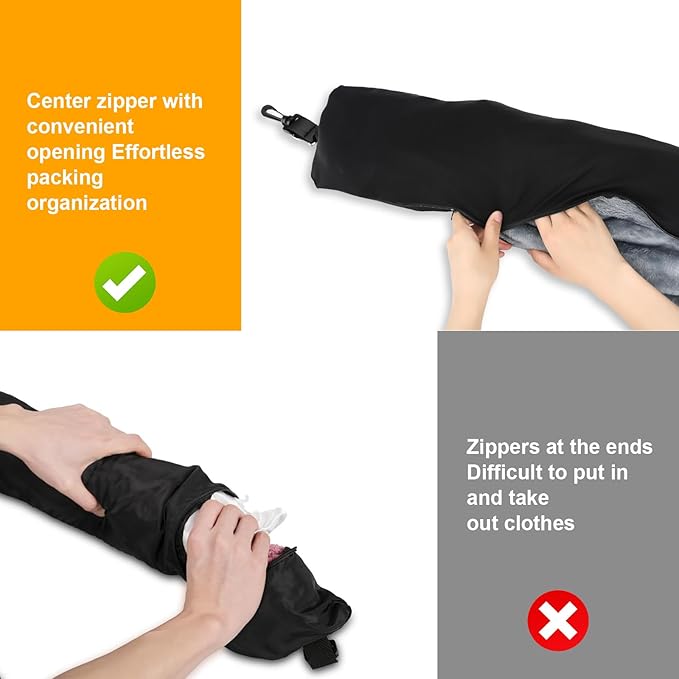 - 🧳Travel Light, Travel Right - Avoid hefty baggage fees and travel smart with our fillable travel pillow that doubles as a packing cube. Pack 3 days' worth of clothing cleverly to keep your luggage light and your wallet happy. The savings can translate into unforgettable experiences - a delightful meal, a spontaneous side trip, or a special souvenir. It's more than a pillow; it's a ticket to a richer journey without extra baggage.